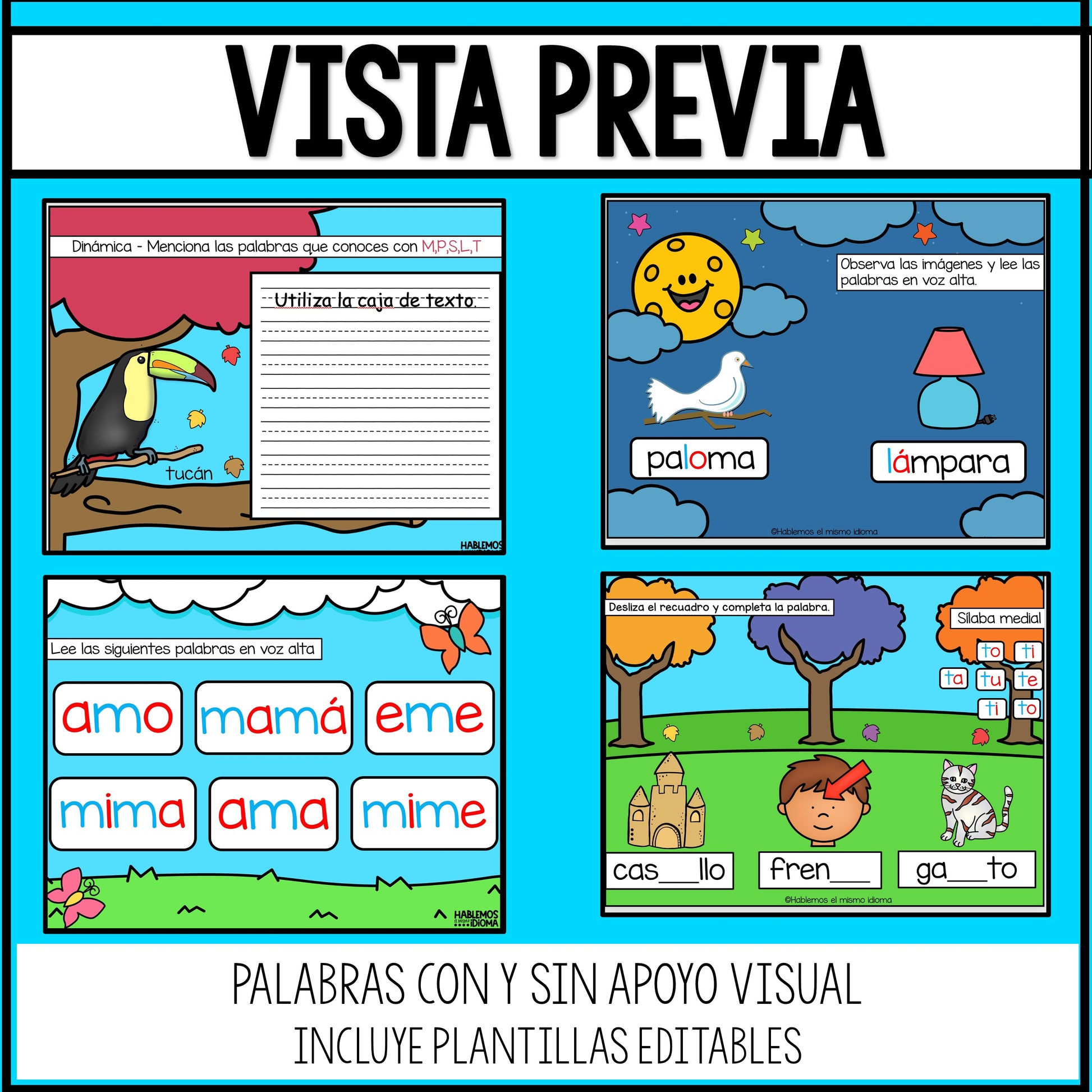It will facilitate the introduction of reading-writing and initial comprehension by focusing on the letters MPLS T. It includes a visual key on vowels, consonants and words.