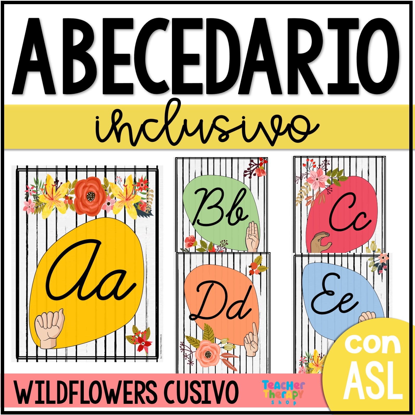 Prepara un espacio inclusivo en tu sala de clases o centro educativo. Este alfabeto en español con un delicado diseño de flores "Wildflower flowers" te permitirá no tan solo decorar tu aula, sino también trabajar la grafía (letra) en cursivo integrando a su vez lengua de señas americanas (ASL). Realizado pensando en maestros de escuela secundaria y/o superior.Al utilizarlo diariamente podrás ayudar a todos tus estudiantes a conocer, aprender y practicar el alfabeto de una forma inclusiva e integrada creando así un ambiente de inclusión.