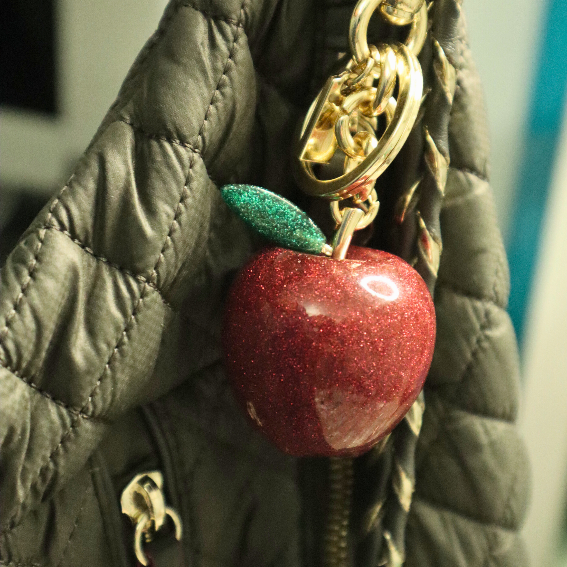 Hermoso, chic y elegante colgante en forma de manzana, perfecto para cartera. Ideal para darle un toque especial a tu mochila para la escuela.