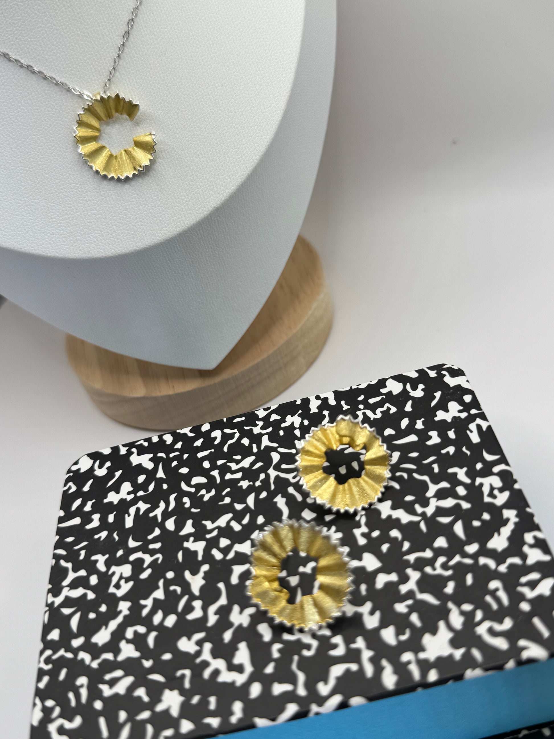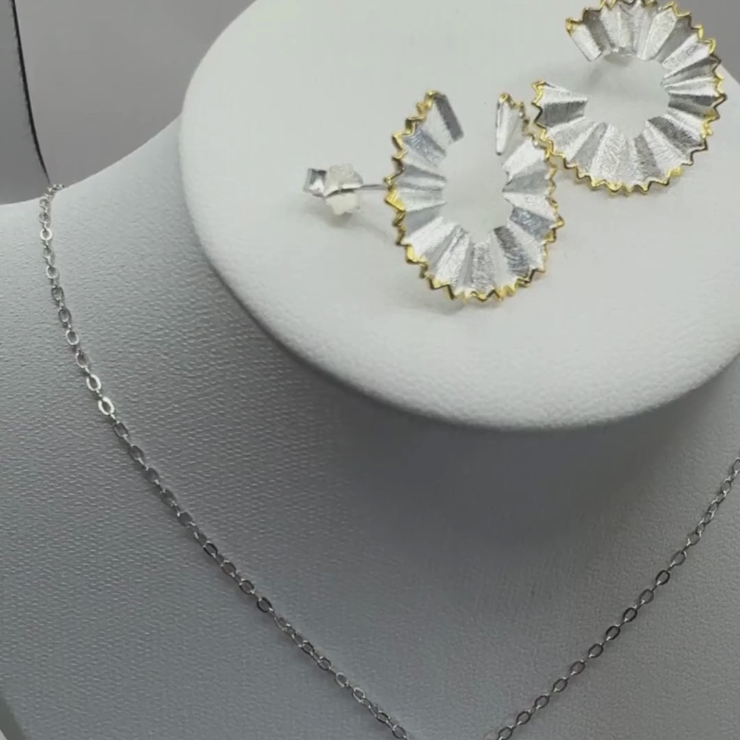 Delicado par de studs en forma de cachispa de lápiz en plata 925 doble tono.