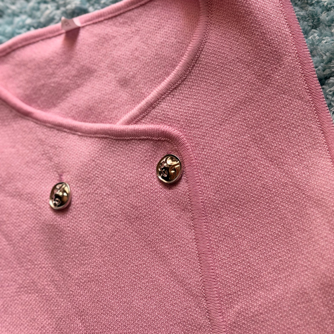 El color rosado - violeta pastel añade un toque femenino y fresco, mientras que su tela knit suave provee estructura y comodidad. Perfecto para combinar con mahones, pantalón de vestir o falda, creando outfits casual-elegantes para el salón de clases, reuniones o eventos especiales.