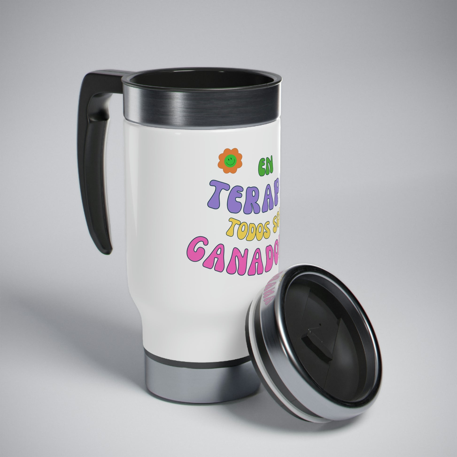Groovy Stainless Steel Travel Mug with Handle, 14oz