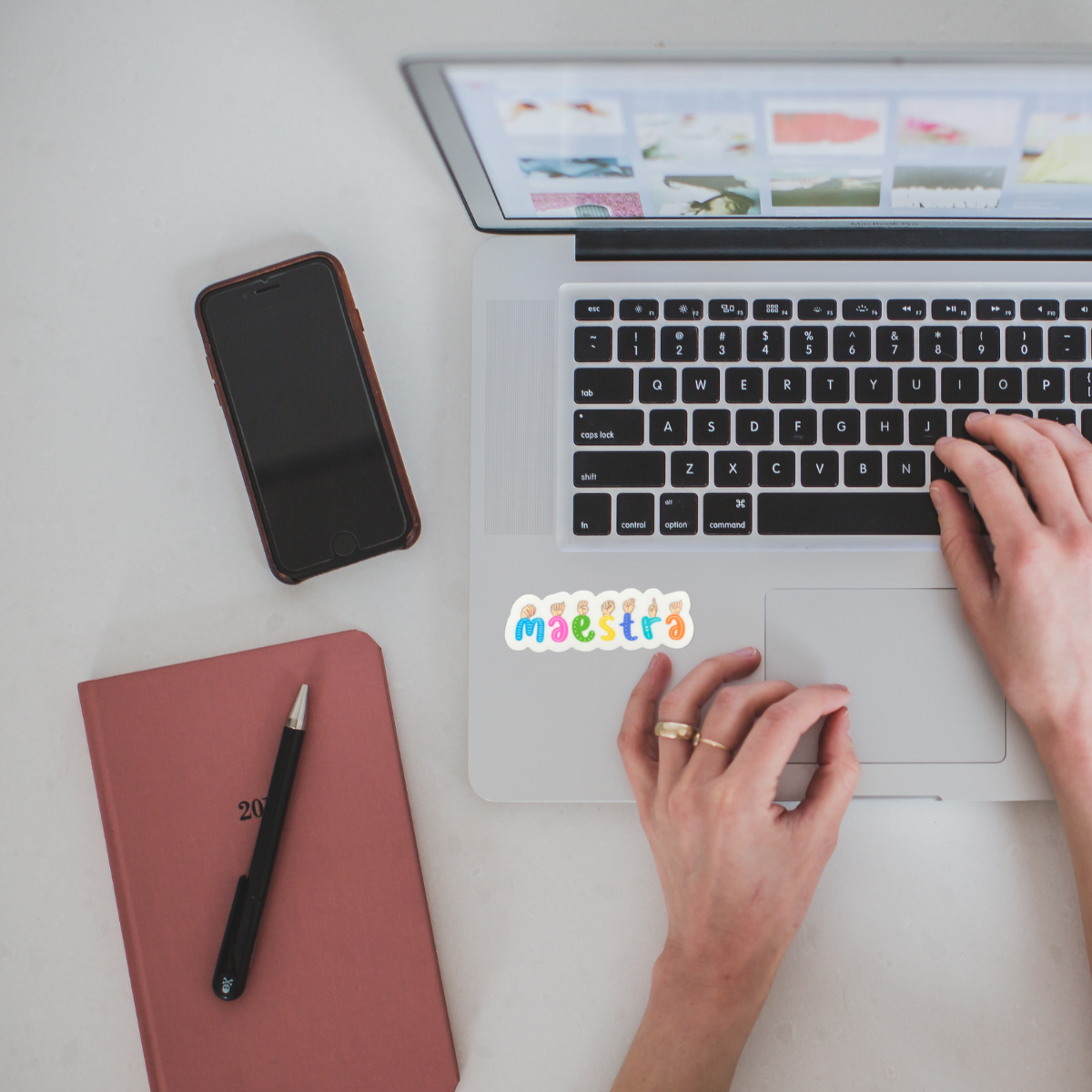 Maestra está pegatina o "sticker" es ideal para decorar tu laptop, "tumbler", vaso o espacio de trabajo y resaltar eso un tanto amas, educar.