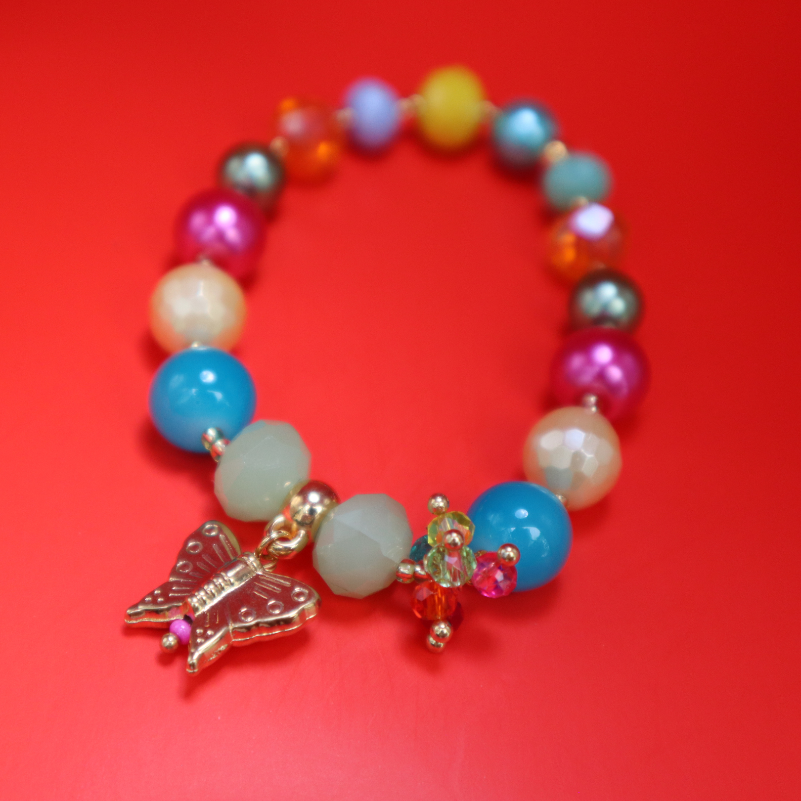Alas de luz | pulsera elástica de colores con dije en forma de mariposa