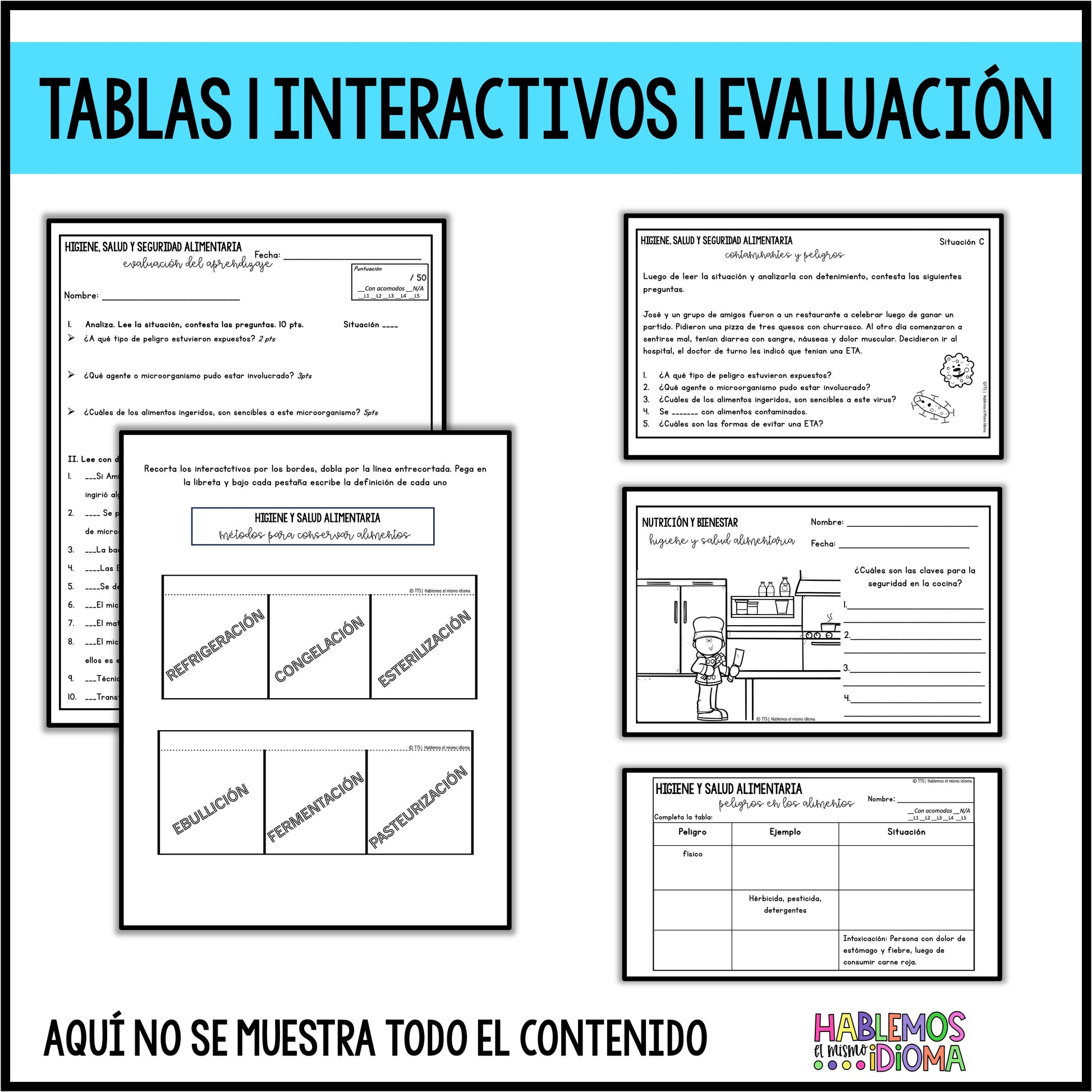 ¿Tus estudiantes requieren dirección en el tema de ciencias de los alimentos o necesitas ayudarlos a conocer más a fondo el tema de nutrición, salud y bienestar? Esta paquete de actividades tiene como propósito que el estudiante se pueda familiarizar con las reglas de salud y seguridad en la cocina, métodos de conservación de alimentos y los peligros que se exponen cuando no se confeccionan o manejan los alimentos de forma incorrecta.