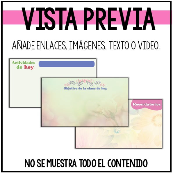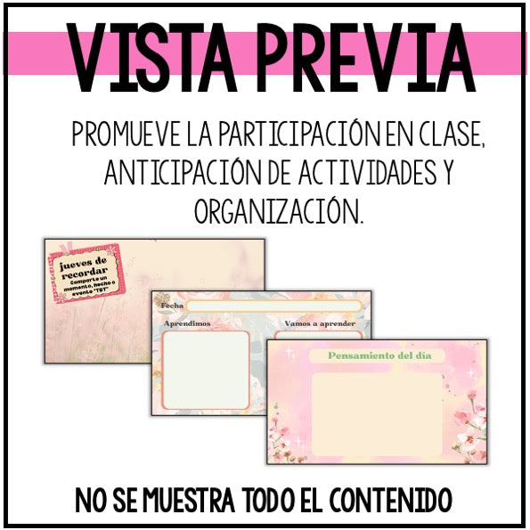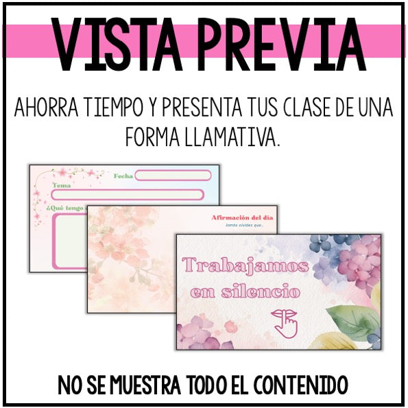 ¿Necesitas ayuda en el manejo del tiempo, la rutina diaria, presentación y organización de tus clases? Si tus estudiantes requieren ayuda para la clase diaria y estructura para llevar a cabo las actividades estas plantillas pre-diseñadas en formato editable serán tu salvación.