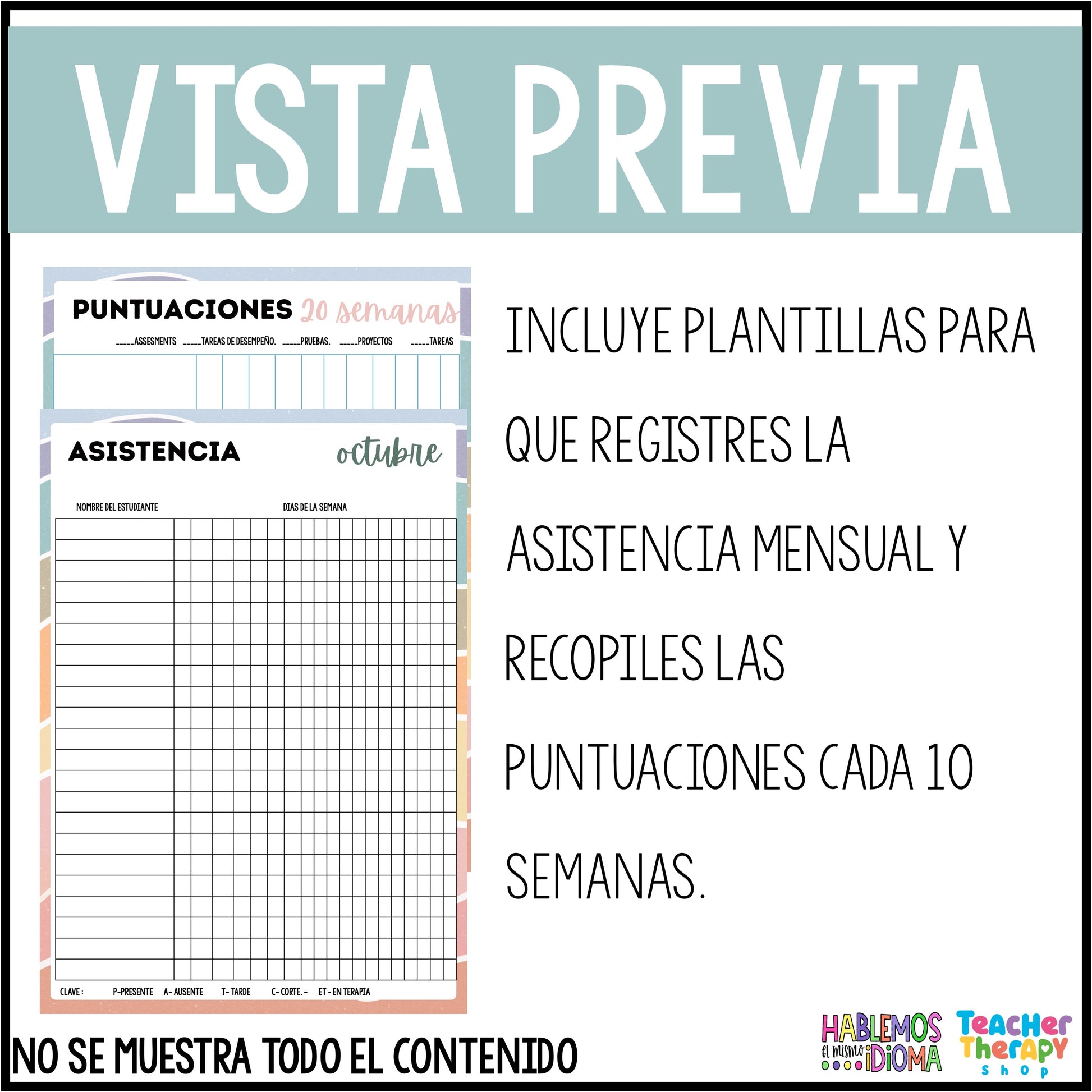 Registro escolar | Recopila la asistencia mensual, puntuaciones cada diez semanas y mantente organizado durante el año escolar.